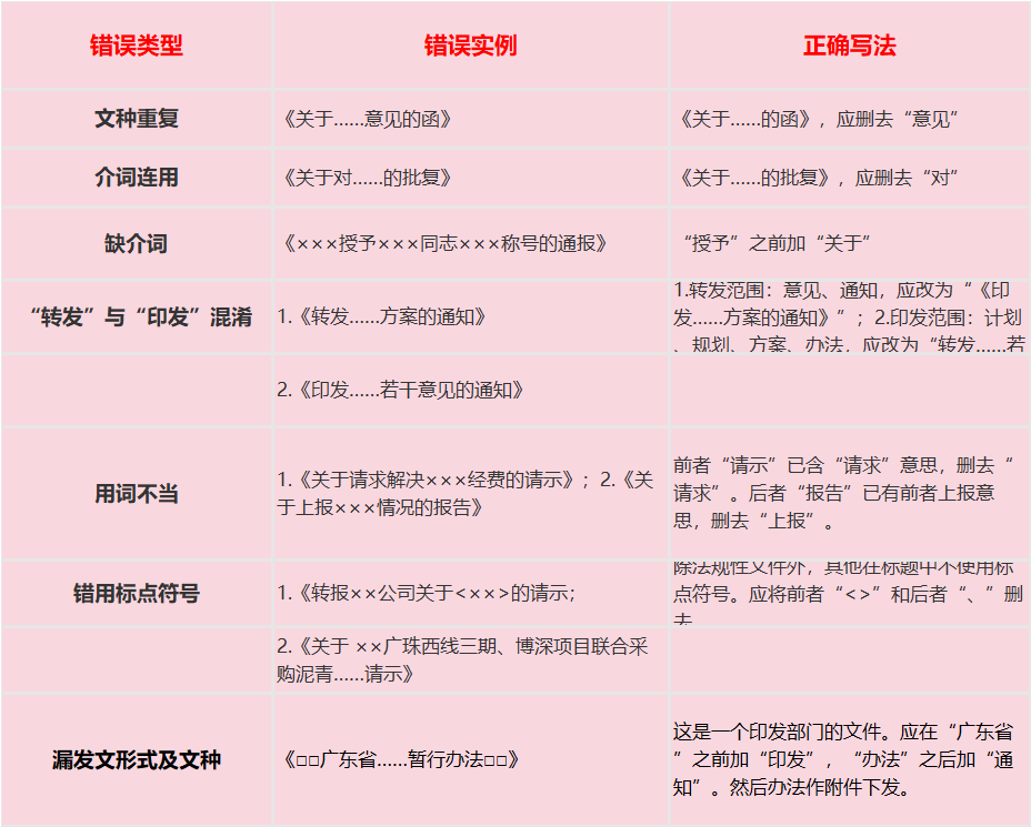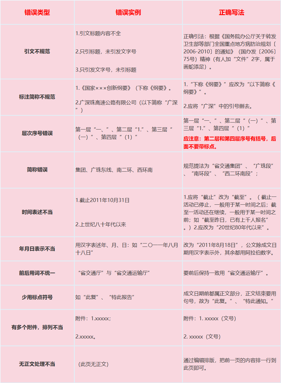 公文常见错误更正对照表!果断收藏!
